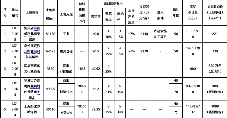 日前,位于莱西的5宗地上市,包括2宗商住地(建面21.23万㎡)、1宗商业用地(建面1835㎡)、1宗仓储和1宗工业地,将于11月28日拍卖。其中商住地最高楼面价1099元/㎡,商住地设最高限价,达到限价转入竞商品住房建面环节。